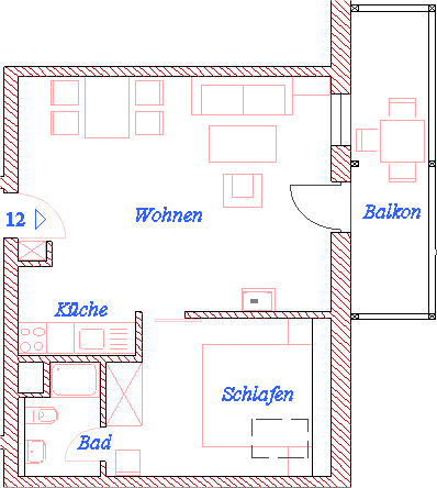 Wohnimmer, Schlafzimmer, Küchenzeile, Dusche/WC )